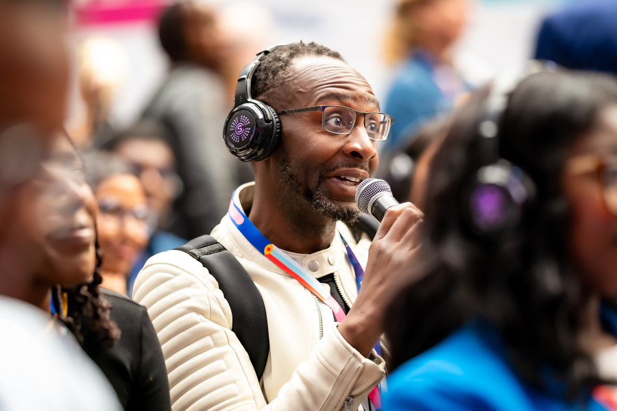 The dress code is "podcast industry" — which in practice means smart casual. You'll see everything from trainers and jeans to blazers, but the general vibe is relaxed professional. Comfortable shoes are non-negotiable. You'll be on your feet most of the day, moving between stages and the exhibition floor.